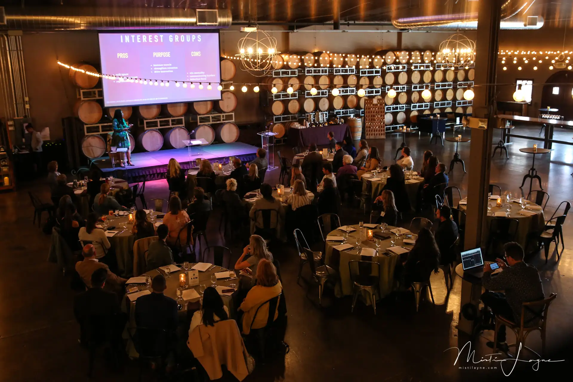 From a White-washed brick walls and aromatic wine barrels in the expansive warehouse-turned-winery boasts 20-foot-high ceilings, a balcony overlooking the entire room, a reception area with a 30-foot granite bar, and an outdoor patio. With the board-room is attached, and it’s use is complimentary with your rental of the Cask Room.