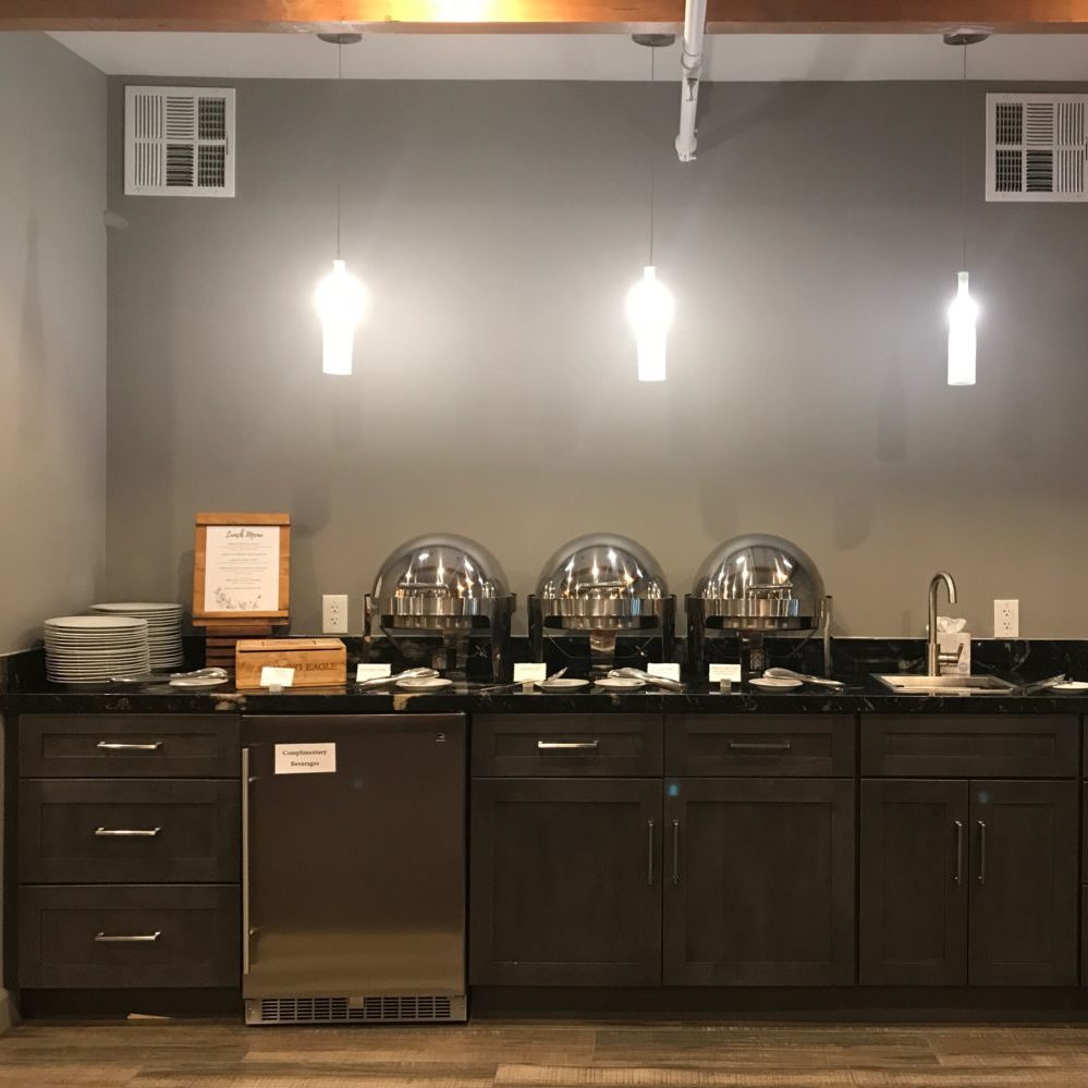 This second-floor private suite has all the high-tech amenities for corporate meetings, trade seminars, social clubs, birthday parties, baby or wedding showers, and family celebrations for up to 50 guests. The Syrah Suite has a private entrance directly from the foyer, a private bathroom, and a kitchenette with a sink, mini fridge, and cabinet space for all-day events. Hosting a meeting with a presentation or a party with a highlight video? A flat screen TV comes complimentary with this space, along with high speed wireless internet and phone.